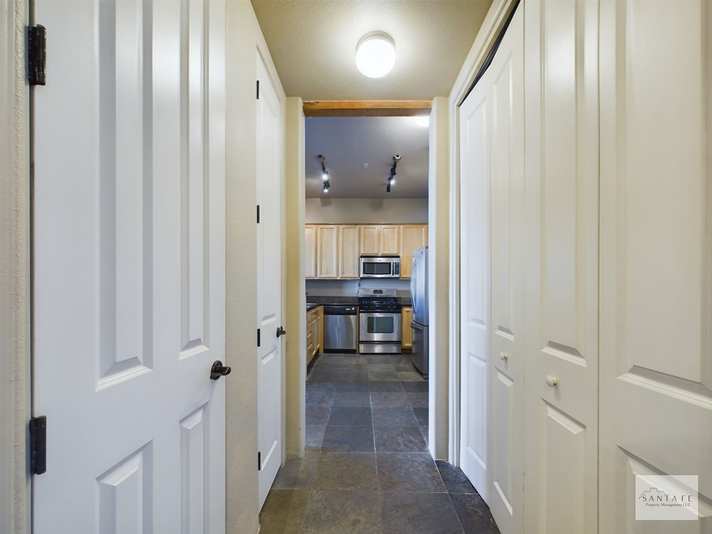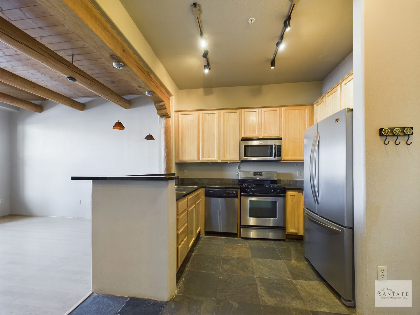 This is a stylish UNFURNISHED one bedroom, one bathroom ground level condo with luxury quality finishes. It features, slate tile floors, laminate wood floors, granite countertops, upgraded appliances, kiva gas fireplace, and a view you don't normally get from a condo! The morning sunrise and mountain views are magnificent!!!! Do not hesitate on this unit! Call Santa Fe Property Management today to schedule a viewing!